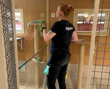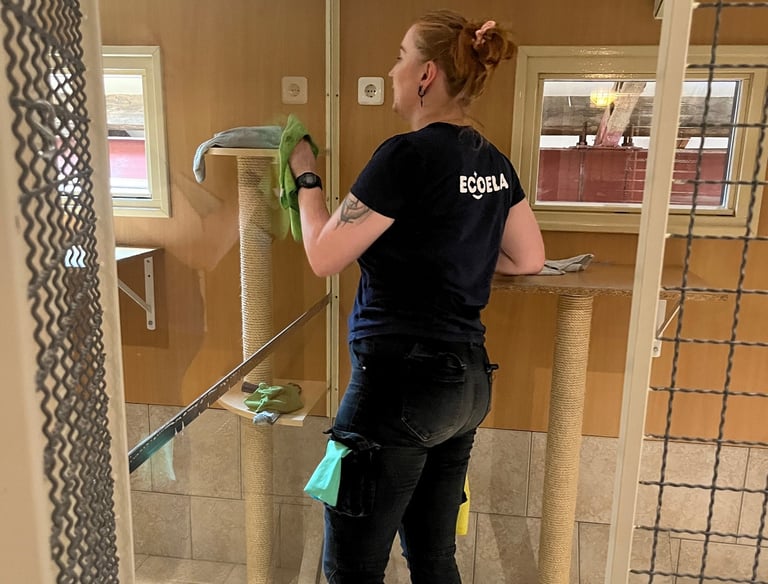 Ervaren in het schoonmaken van omgevingen met dieren. Grondige reiniging met veilige, diervriendelijke producten.